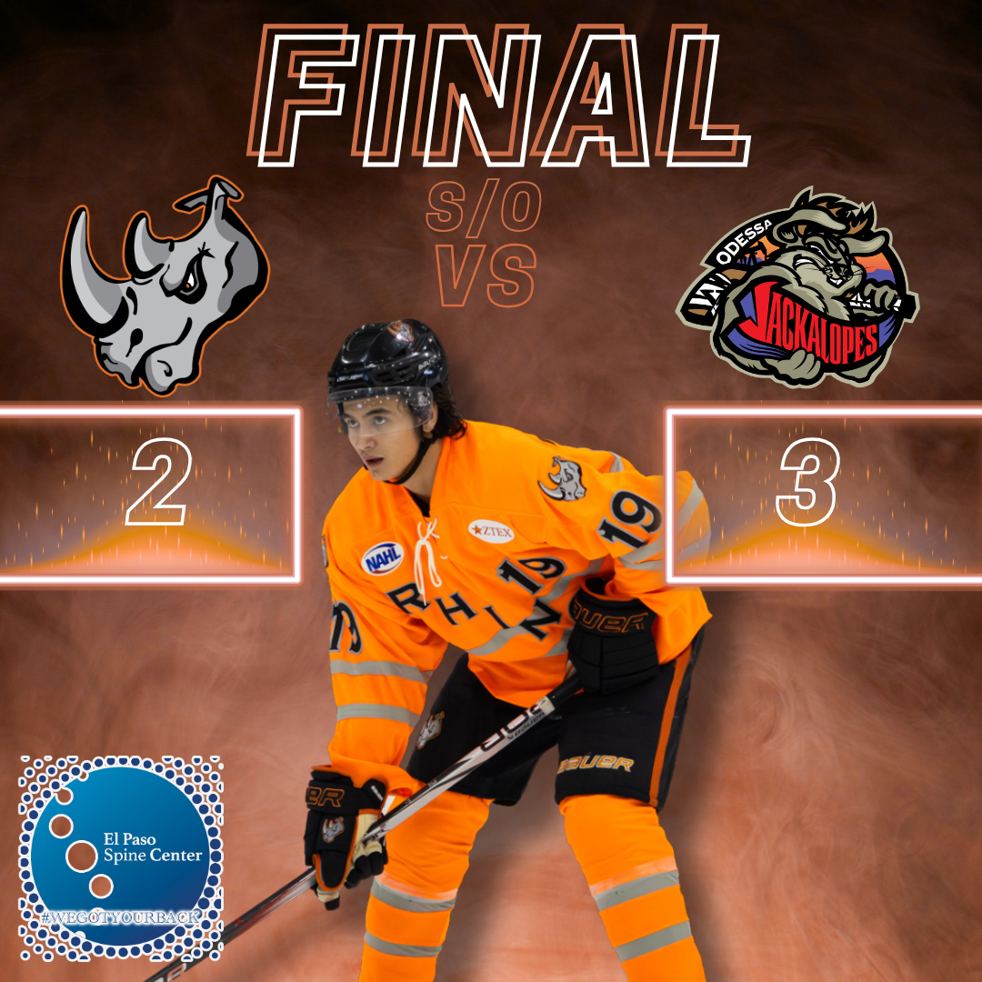 Sunday: El Paso Rhinos 2 @ Odessa Jackalopes 3 – Rhinos take a quick stop over in Odessa this past weekend after their series with the Wranglers for a one-off game before returning home. Jackalopes hit the ice with high energy tonight and take control of the game’s pace early on. With 7:51 left to go in the first Caden Ghiossi takes the first goal of the day to set up the second period at 1-0, Jackalopes leading. Though the second period saw back-and-forth action and fights, neither team ceded a single point.