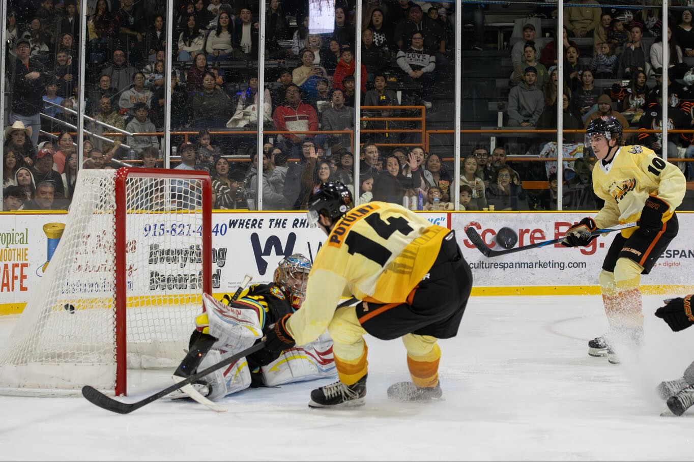 Saturday: New Mexico Ice Wolves 5 @ El Paso Rhinos 2 – Rhinos & Ice Wolves are back tonight as we begin the second game of the series! Fresh off of last night’s defeat the Ice Wolves make their return to Rhino ice with a newfound hunger for revenge, sprinting in to action right after puck drop. It wouldn’t be until the 13:44 mark where Cayden Joramo finds himself in the perfect opportunity to give the Ice Wolves the lead, scoring himself the Ice Wolves’ first goal of the night. With the clock ticking down Troy Hunka seizes the chance at a power play and ties up the game at 1-1 with 2:43 left in the first.